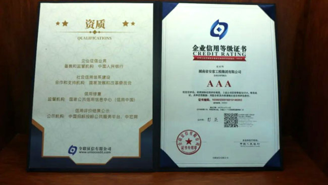 在今年的全國(guó)征信評(píng)定活動(dòng)中,湖南省安客工程集團(tuán)有限公司又一次脫穎而出,再度榮冠成為2022年度“企業(yè)信用等級(jí)3A”企業(yè),為集團(tuán)品質(zhì)品牌升級(jí)邁向新的高度,凝聚更多力量,注入更多動(dòng)能。